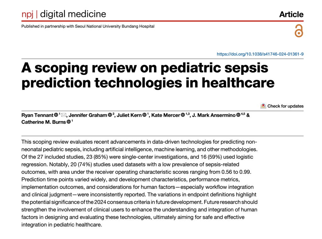 - Tennant, R., Graham, J., Mercer, K., Ansermino, J. M., & Burns, C. M. (2022). Automated digital technologies for supporting sepsis prediction in children: A scoping review protocol. BMJ Open, 12(11), e065429. https://doi.org/10.1136/bmjopen-2022-065429
