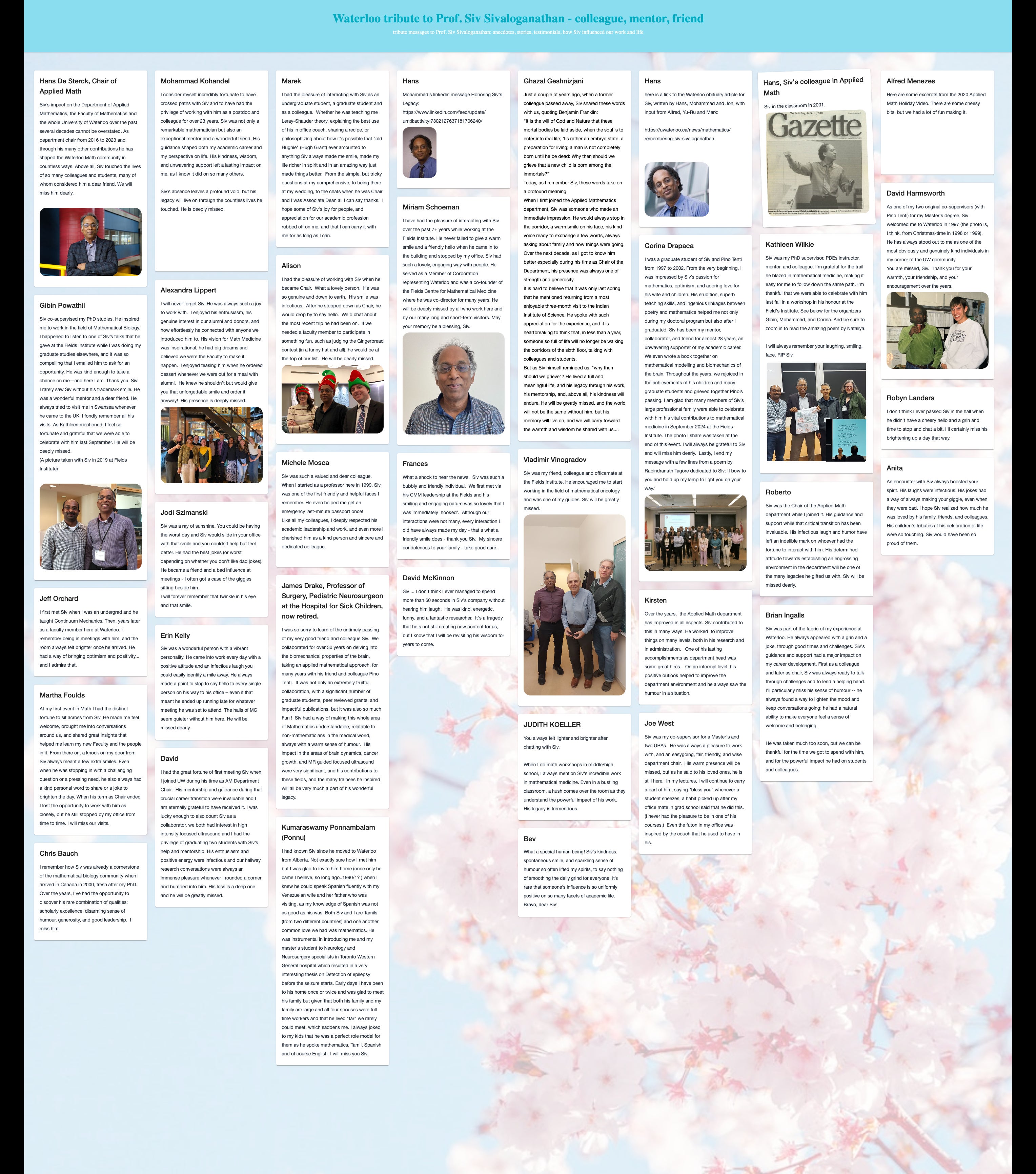 Link to: Waterloo tribute to Prof. Siv Sivaloganathan - colleague, mentor, friend (and image, pdf)