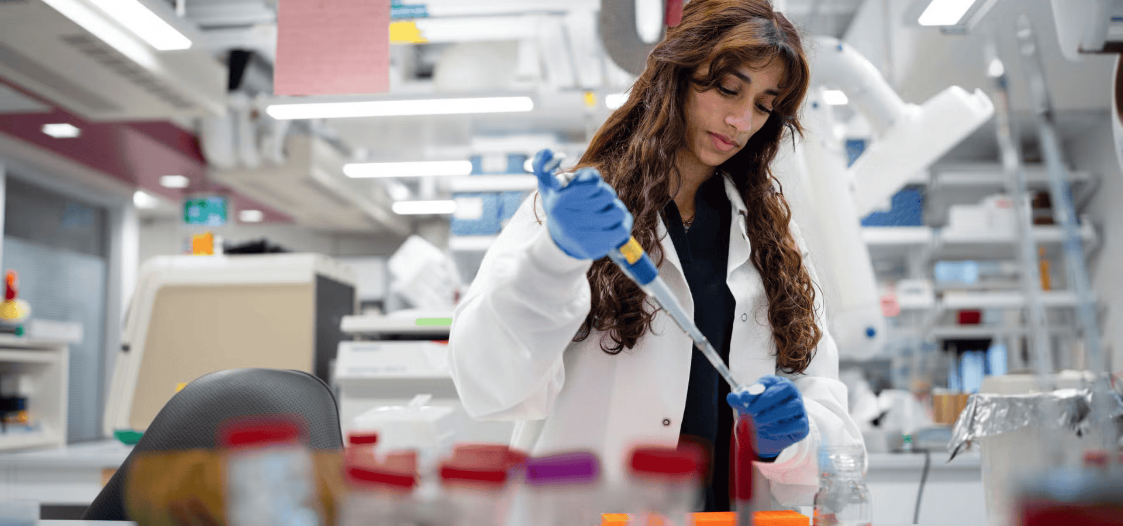 At the University of Waterloo, Dr. Dale Martin’s lab is developing new ways to treat Huntington disease using nanodiscs, which are tiny lipid-based vehicles that can deliver gene therapeutics deep into the brain. Current treatments require invasive spinal injections, but nanodiscs could make it possible to administer therapy through a simple vein injection. Yusra Kureshi (BSc ’25), recipient of the 2025 Huntington Society of Canada Student Fellowship, is helping refine how nanodiscs bind to gene therapeutics called antisense oligonucleotides (ASOs). Her work includes creating and testing nanodiscs in cells and neurons to analyze performance. This research could transform treatment for Huntington disease by making it less invasive and more effective. For Kureshi, the project also provided a formative research experience, inspiring her to pursue graduate studies in neurodegenerative disease research.
