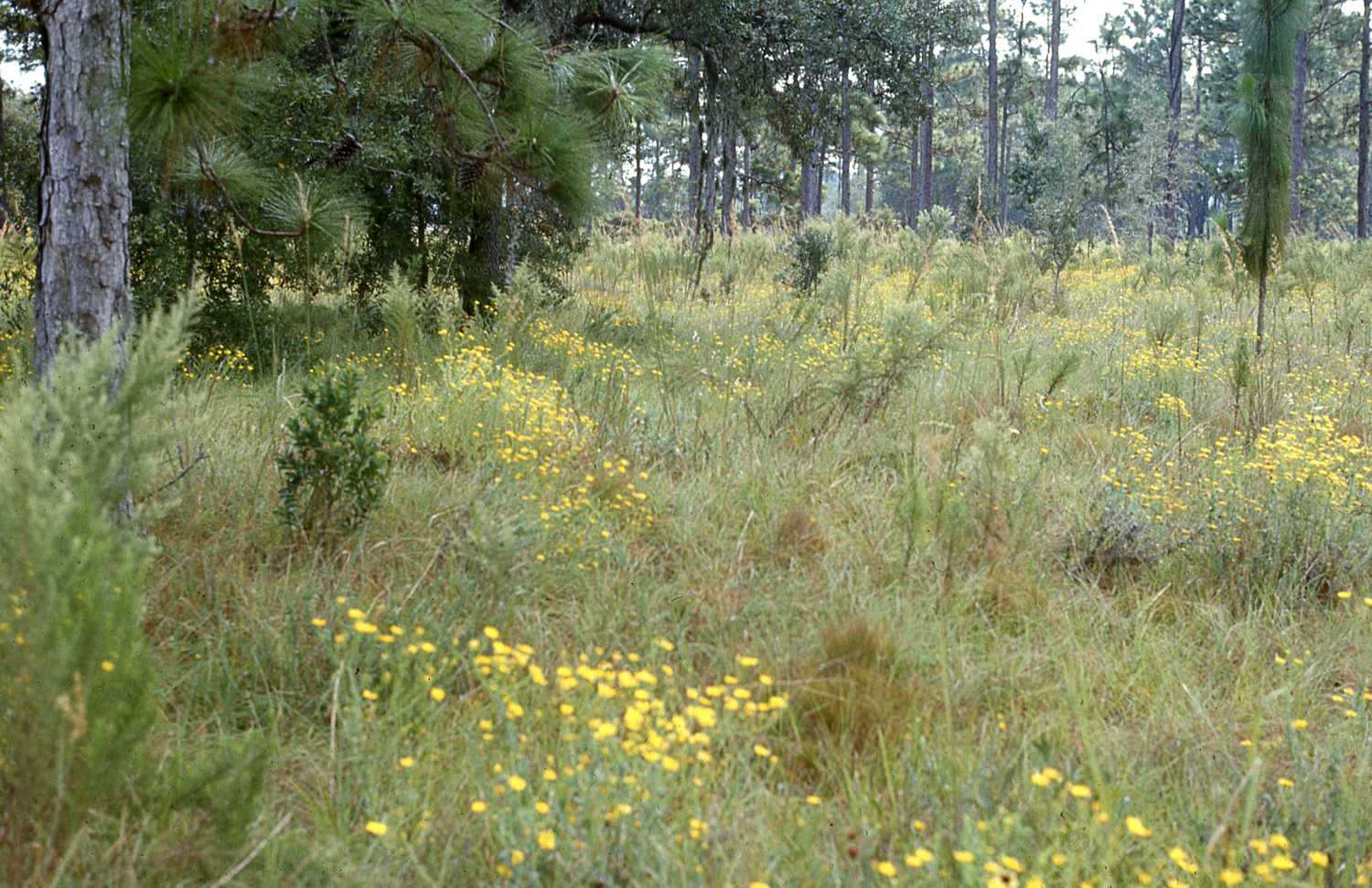 1-4. Chrysopsis latisquamea. 1-2. Habitat and robust plant, Semple & Wunderlin 2563, Hernando Co., Florida. 3. Stem leaves, Semple & B. Semple 7448, Suwanee Co., Florida. 4 .Heads of C. latisquamea (left; S & W 2563) and C. gossypina ssp. gossyina (S & W 2564).