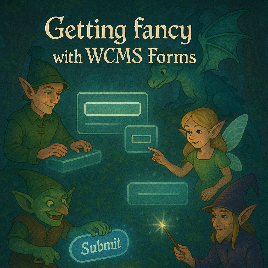 At WatITis 2024, I presented a session titled "Getting fancy with WCMS forms". A recording of the talk is available, though I believe you have to log in with your UWaterloo credentials to view it (and the actual presentation starts around the 18:53 mark of the recording).