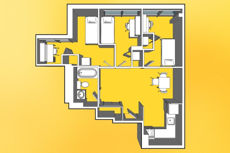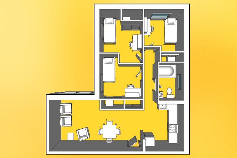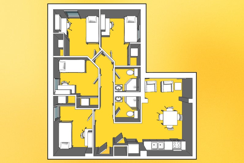 Rooms: 2*-, 3- or 4-bedroom suite (*Please note that due to the limited number of 2-person units for first-years, they are not rankable on the Campus Housing Preference Form and 2-Bedroom suites may not be available for Fall/Winter contracts depending on demand)