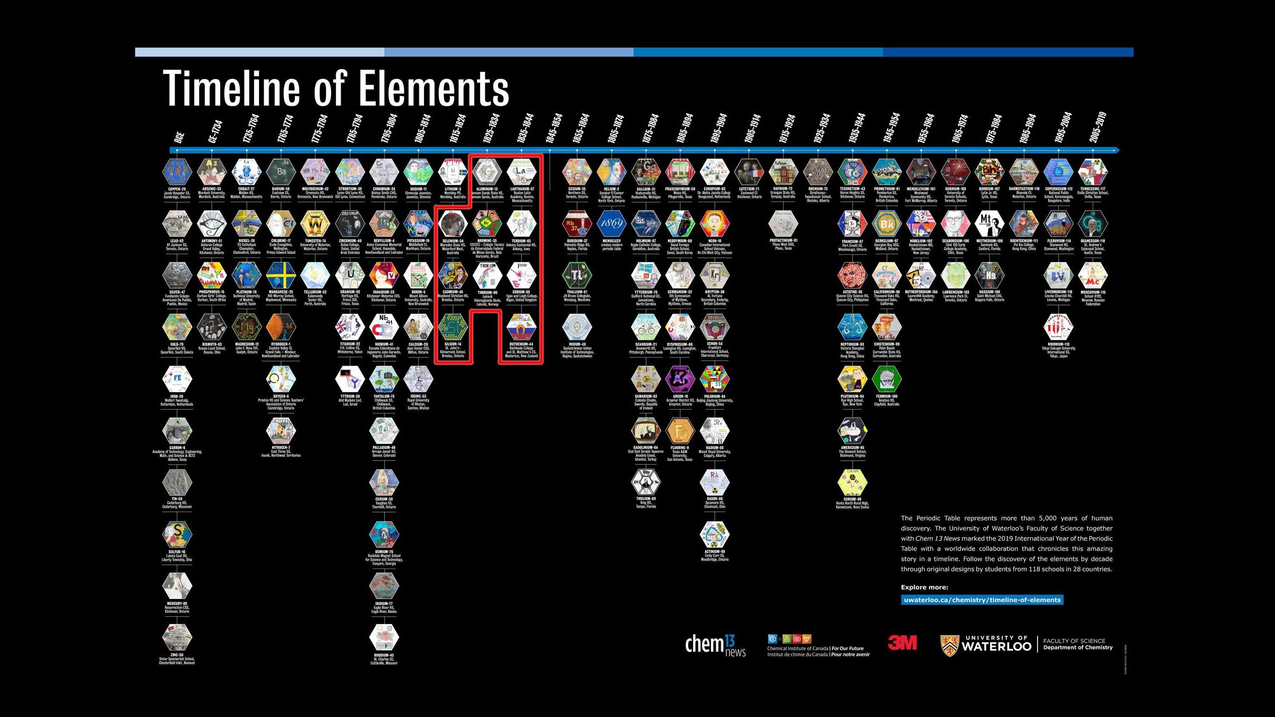 This series is a companion to our International Year of the Periodic Table project — Timeline of Elements and Mendeleev Mosaic. Time periods from our timeline project will be featured highlighting the historical and scientific advancements resulting in the discoveries of the elements of that period. James Marshall researches the history of the discovery of the elements. His studies have carried him to over 20 countries where he has photographed and documented specific sites which he describes in his publications on chemical history. Explore the artwork for the Timeline of Elements for Berzelius' World (1815-1844) with individual discovery stories of each element with acknowledgement to artist(s), teacher, school and countries on our Timeline of Elements website.