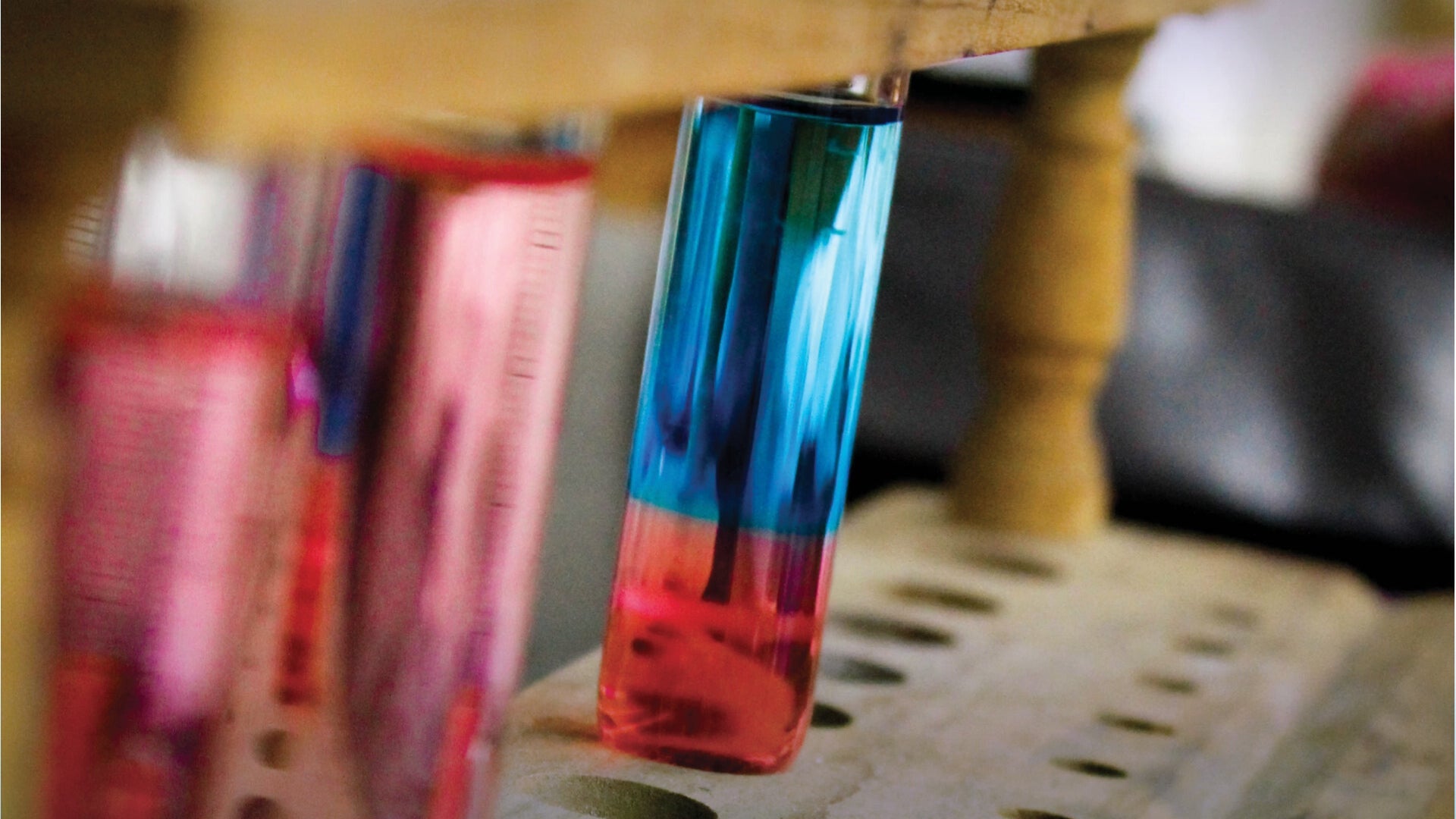 I really enjoy experiencing students' surprised reactions when the two colourful layers form. In fact, once a grade 11 chemistry student asked about the experiment after eyeing the set of these test tubes in the fume hood where I was evaporating off the acetone. After a discussion about the lab, the student decided to take grade 12 chemistry, just to experience it for themselves. The following year, they concluded that it was worth the wait.