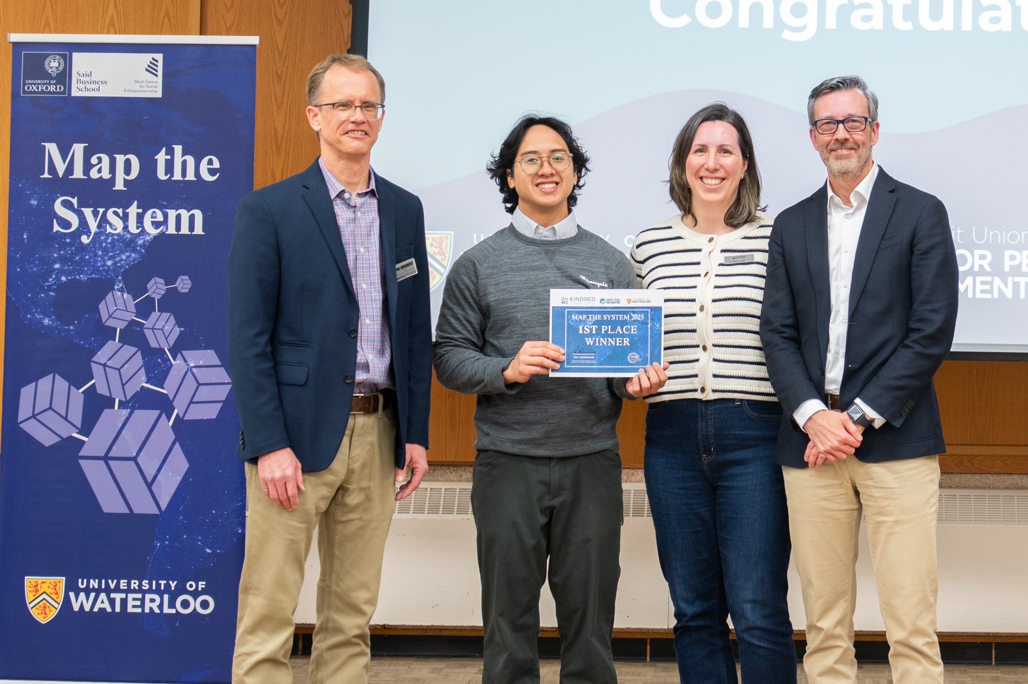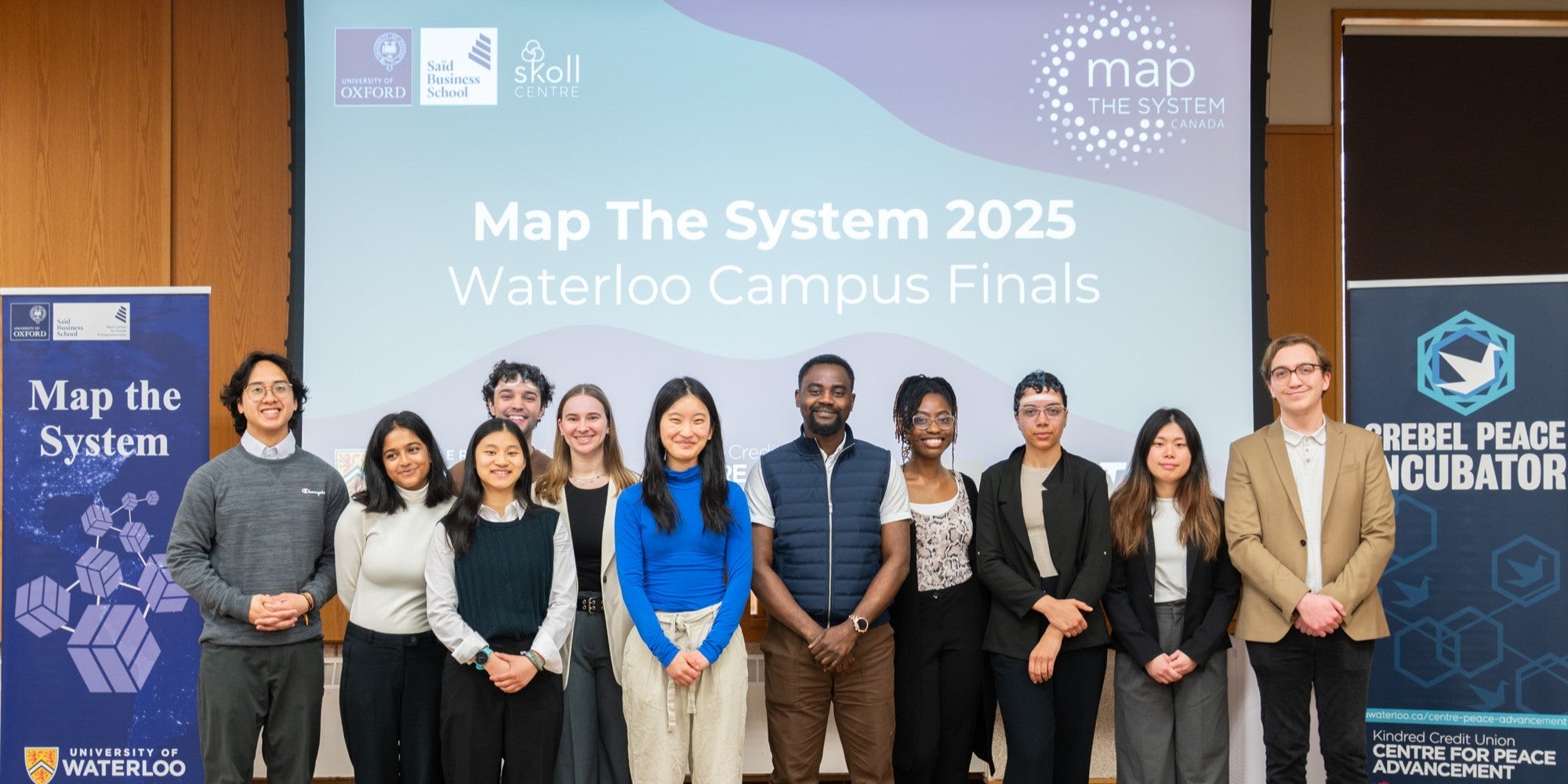 On April 7, the Kindred Credit Union Centre for Peace Advancement hosted the University of Waterloo campus finals for the global Map the System competition. The event, held in the Great Hall at Conrad Grebel University College, showcased the results of system thinkers’ diligent efforts to deepen their understanding of a problem rather than rushing to find answers.
