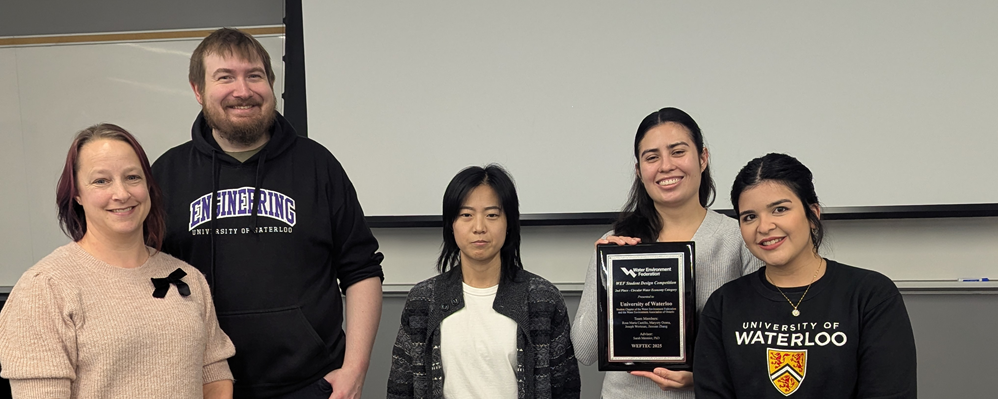 The student team, supervised by Professor Sarah Meunier, first won the Water Environment Association of Ontario (WEAO) competition. The contest, a municipality that provides a current and relevant problem. After that the team, sponsored by WEAO moved on to a second-place win at WEFTEC.