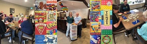In consultation with their FUN Coordinator and staff at Lanark Village, we developed a board game collection tailored for use with residents and their visiting family members, including children and youth. The goal of the collection was to encourage meaningful intergenerational interaction during family visits and to provide residents with engaging, low barrier activities during downtime in communal spaces. The collection was also designed to promote conversation, shared play, and a sense of community among residents and among residents and staff interacting with them one-on-one such as PSWs and visiting highschool students on co-operative education placements.