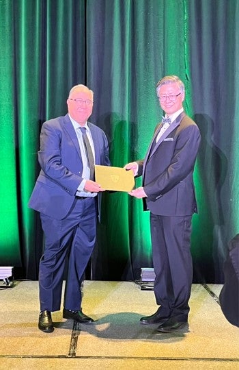Dr. Hassan Baaj (left) was named a Fellow of the Canadian Society for Civil Engineering (CSCE) at the organization’s 2025 annual conference.