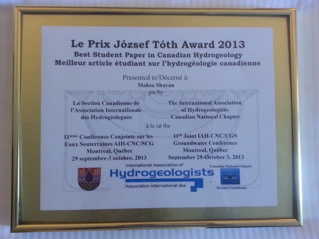 Muyiwa Ogunlaja a PhD student in Civil & Environmental Engineering received the award for best poster presentation at the 2015 World Water Day Graduate Research event, which was held at WLU on March 23, 2015.