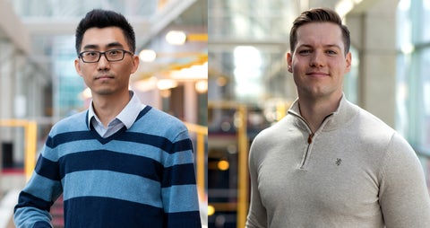 Christian Garmann Sørli (right) is a master’s student at the Norwegian University of Science and Technology (NTNU). In January, he came to the University of Waterloo for an exchange work term, where he explored the intersection between AI and education alongside Professor Jian Zhao (left). | Photo credit: Joe Petrik