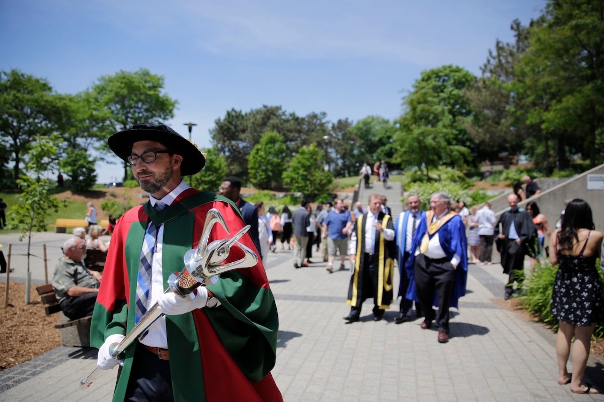 President Vivek Goel (alternately James W.E. Rush, Vice-President, Academic and Provost) will provide a territorial acknowledgement and welcome the Indigenous opening led by Indigenous Knowledge Keeper Myeengun Henry, which includes traditional drumming. Gladwyn Badger will bear the Eagle Staff at each ceremony.