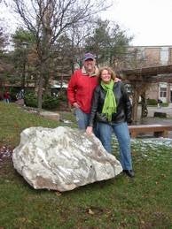 Jesse's parents Bob and Marg with the rock donated in memory of their son Jesse.