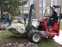 Jesse’s rock being installed in the University of Waterloo's Rock Garden.