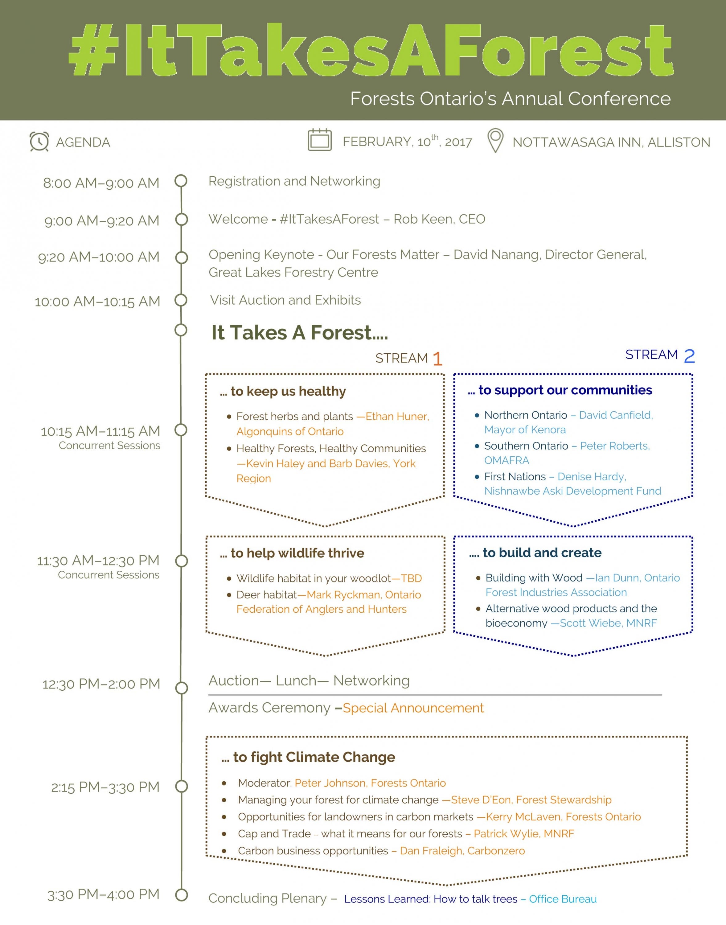 On February 10, 2017 at the Nottawasaga Inn in Alliston, the day will consist of discussing how it takes a forest to build healthy communities and a robust and prosperous society. Learn more about #ItTakesAForest.