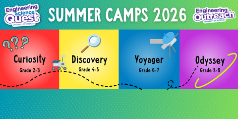 ESQ Summer Camps include a variety of hands-on activities that explore science, technology, engineering and math (STEM) and feature STEM mentors and tours of exciting spaces on UW’s campus! Campers will experiment with new technology, develop valuable skills, and connect with friends. Our university-level staff studying in various engineering, science and education programs develop innovative and creative activities for their camps that explore all areas of STEM and so much more!