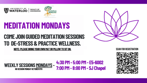Monday, October 30, 2023 4:30 pm - 5:00 pm EDT (GMT -04:00) Monday, November 6, 2023 4:30 pm - 5:00 pm EST (GMT -05:00) Monday, November 13, 2023 4:30 pm - 5:00 pm EST (GMT -05:00) Monday, November 20, 2023 4:30 pm - 5:00 pm EST (GMT -05:00) Monday, November 27, 2023 4:30 pm - 5:00 pm EST (GMT -05:00) Monday, December 4, 2023 4:30 pm - 5:00 pm EST (GMT -05:00) Monday, December 4, 2023 4:30 pm - 5:00 pm EST (GMT -05:00)Meditation Mondays