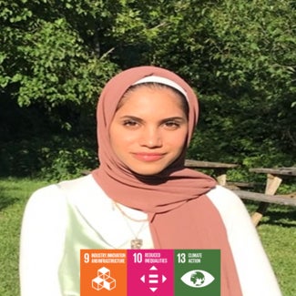 Nouran Nour (ERS, BES ’22) interned with Sustainable Waterloo Region, where she focused on advancing UN Sustainable Development Goals 9 (Industry, Innovation, and Infrastructure), 10 (Reduced Inequalities), and 13 (Climate Action). Her contributions included developing strategies to enhance regional infrastructure, promote equitable green technologies, and reduce carbon emissions, supporting the organization’s mission to address key sustainability challenges.