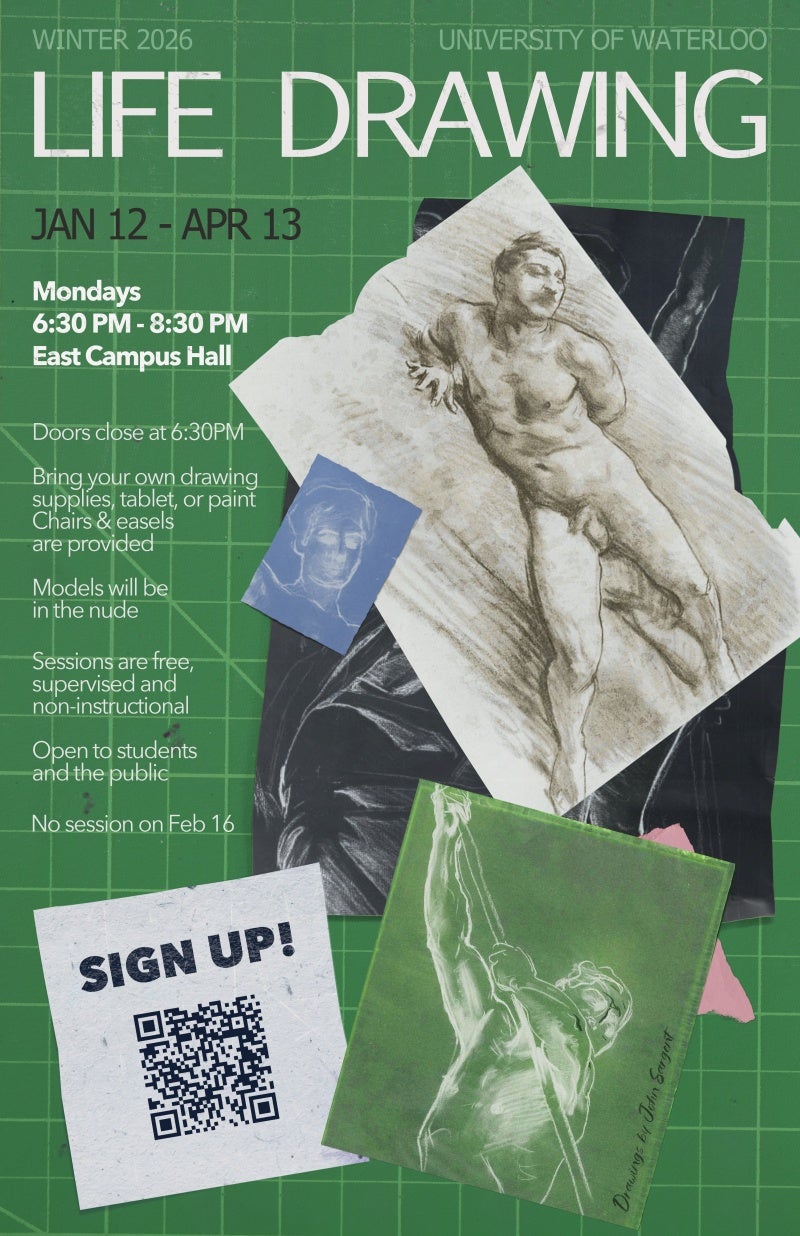 Life drawing sessions for Winter 2026 will run January 12 to April 13. Please note there will not be a session during Reading Week (February 16).