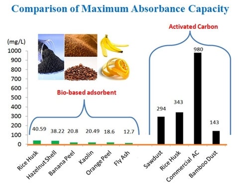 Bio-absorption is considered to be superior over other techniques due to cost effectiveness, design simplicity, ease in operation etc. In the past few years, more and more biomass material have been studied for this purpose, but a critical challenge lies in the low absorption efficiency, especially compared to the conventional activated carbon.