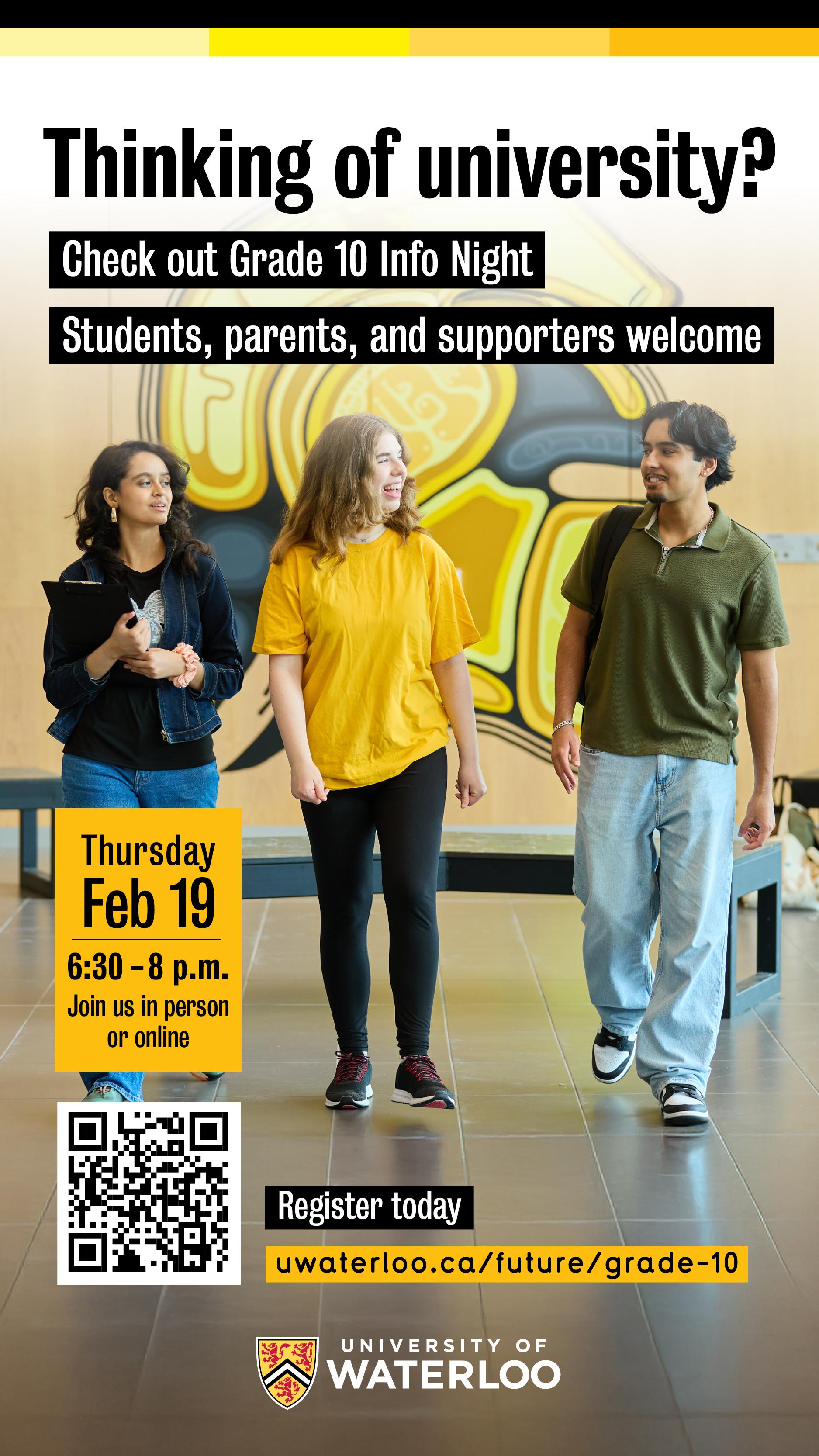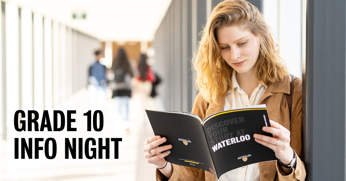 Students and parents and/or supporters are invited to the University of Waterloo’s Grade 10 Info Night. Learn about studying what you love, the application process, and financing your education.