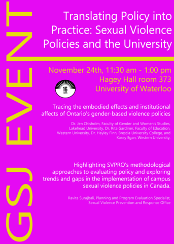 "Highlighting SVPRO's methodological approaches to evaluating policy and exploring trends and gaps in the implementation of campus sexual violence policies in Canada."