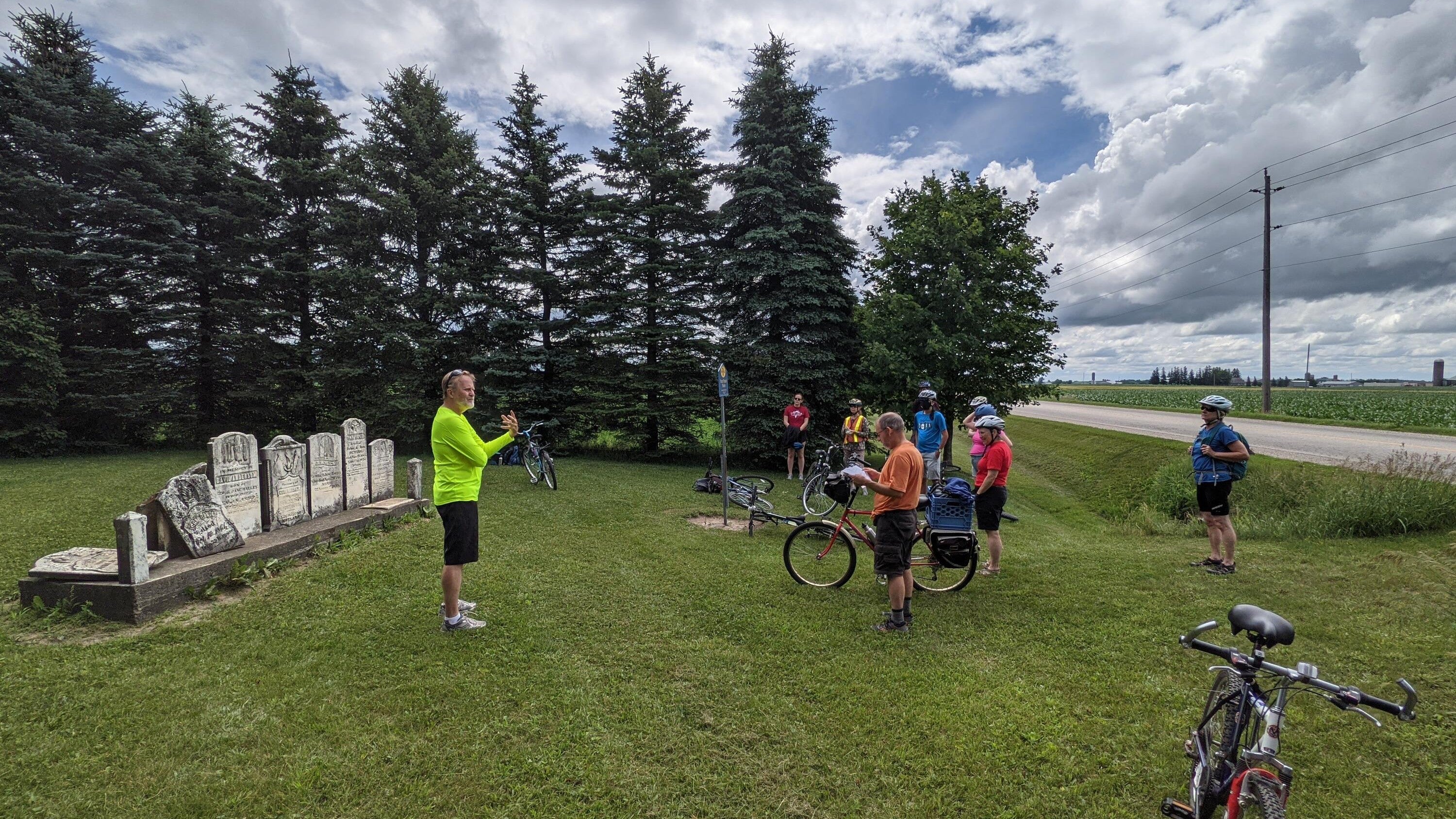 On a gorgeous Saturday in July, Chaplain Ed Janzen led a dozen students and a few staff on a biking and learning tour of the Queen’s Bush area in Ontario, which includes Glen Allen, Macton, and Wallenstein. This area was the location of a Black Settlement, beginning in the 1840s, before Mennonites acquired the land.