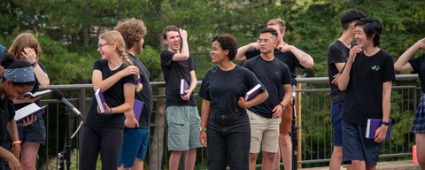 Afternoons are filled with rehearsals, workshops and fun camp activities. In past years, campers have enjoyed learning swing dancing, conducting, choral gospel singing and African drum circles. Capture the flag, obstacle courses, swimming and soccer-baseball are just a few of the games campers look forward to playing. Other camp activities include a trip to the beach, participating in a community outreach project, secret friends and theme days. Every day ends with songs and skits around the campfire.