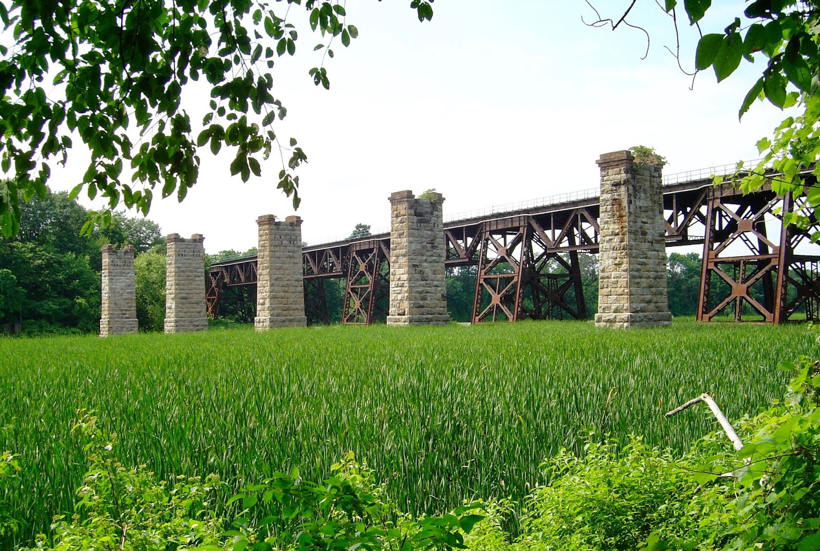 On the Grand River just north of Paris, Ontario, is one of the more spectacular remains of a railway viaduct in the province. I have yet to find out which rail line it once carried and why it was abandoned.