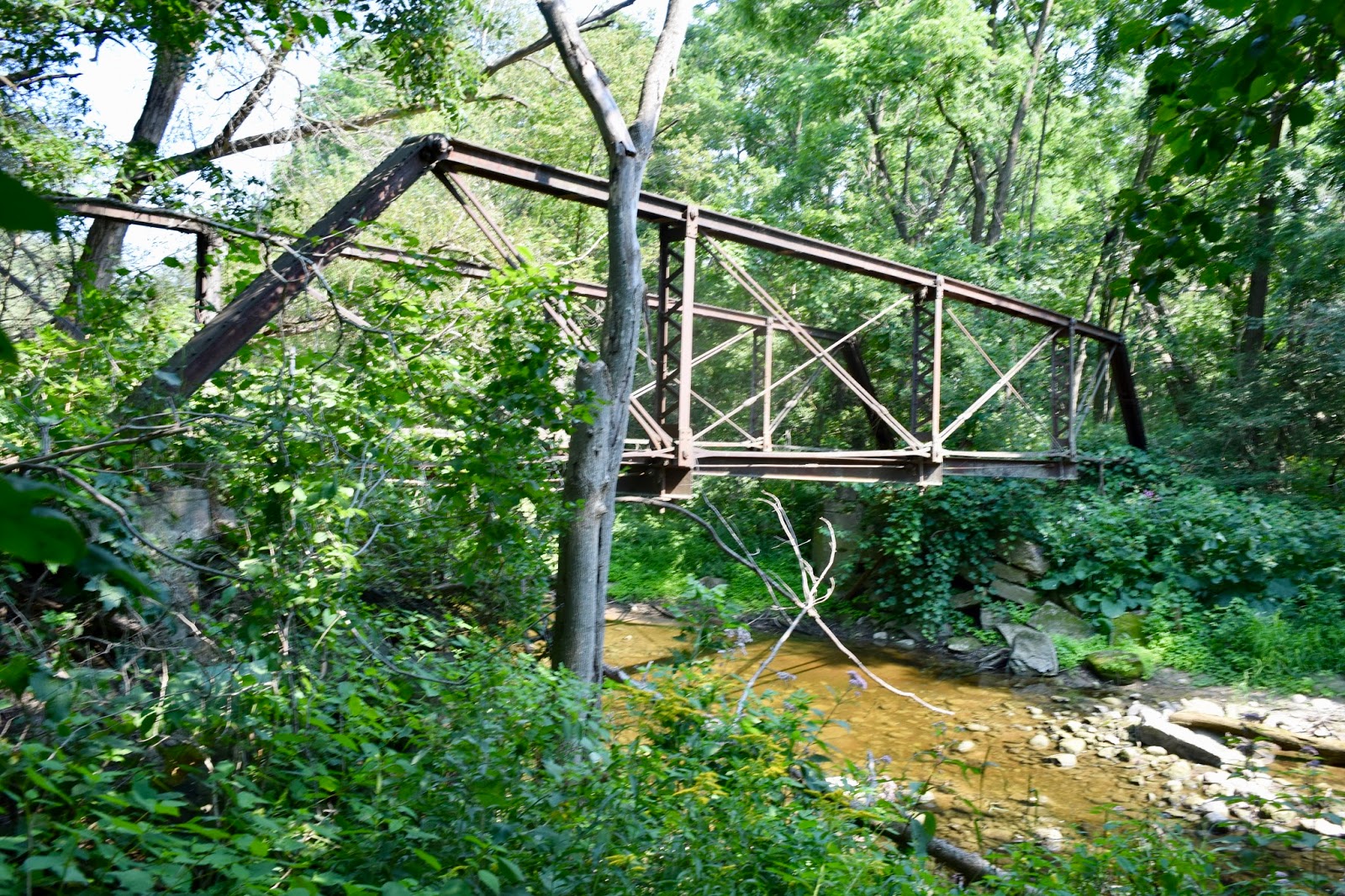Near Sebringville, just west of Stratford, is an old steel truss bridge, deckless but with its stringers and floor beams intact, more or less. It crosses Black Creek, a tributary of the Thames, and once connected two parts of a farm.