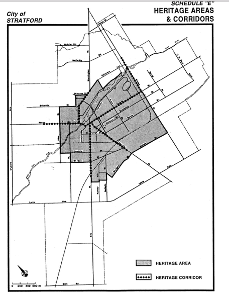 The Board cites the general heritage conservation policies in the OP, typical of those in municipal OPs in Ontario. For example, one of the guiding principles for decision-making is: “heritage preservation to protect areas, landmarks and features which provide a physical link to the early development of Stratford and which contribute to its distinct character and sense of place.” And, under the heading Tourism and Heritage: “Stratford’s built heritage, as evidenced by its remaining fine examples of Victorian architecture and other historic landmarks are [sic] considered critical to fostering tourism activity.”