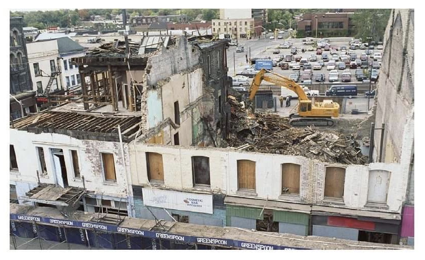 Or, in the case of the Gore Park buildings in Hamilton, are about to. This because Hamilton city council earlier this year approved the demolition of these designated buildings… and despite an unprecedented on-line petition signed by over 1200 people asking them not to (and calling on culture minister Eleanor McMahon to intervene). [1]
