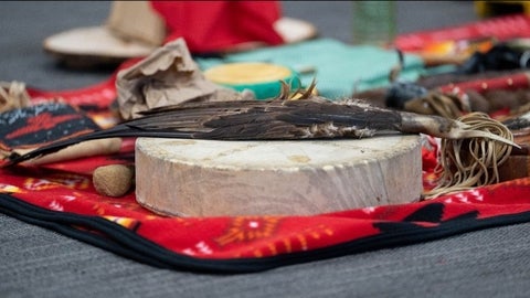On March 27, the University of Waterloo community came together to welcome an Eagle Staff to our institution. The day began with a Sunrise Ceremony followed by a formal introduction ceremony held at Federation Hall. The ceremony began with drumming from the Cedar Hill Singers and a procession, followed by a prayer of thanks led by Elder Bill Woodworth. Indigenous Knowledge Keeper, Elder Myeengun Henry, introduced the sacred Eagle Staff on behalf of the University’s Indigenous community, marking an important step in Waterloo’s journey towards reconciliation.
