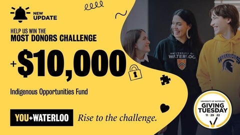 Waterloo’s Giving Tuesday campaign features 43 exciting challenges, including two special ones for our own faculty and staff to support. Your gift to one of these challenges — or to any Giving Tuesday challenge or fund of your choice — can help unlock up to $2,000 in additional funds to make an even greater impact on the experiences of our students.