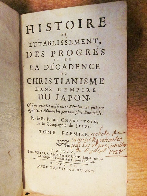 Avant d'écrire sur la Nouvelle-France, Pierre-François-Xavier de Charlevoix publia, en 1715, une Histoire de l'établissement, des progrès et de la décadence du christianisme dans l'Empire du Japon. Cet ouvrage, qu'il remania par la suite à deux reprises, s'inspire grandement des oeuvres de ses prédécesseurs, mais marque également une étape importante et un virage dans le discours catholique sur la mission du Japon. Son oeuvre demeurera une source de référence et l'amènera à développer, quelques années plus tard, son Projet d'un corps d'histoires du Nouveau Monde.