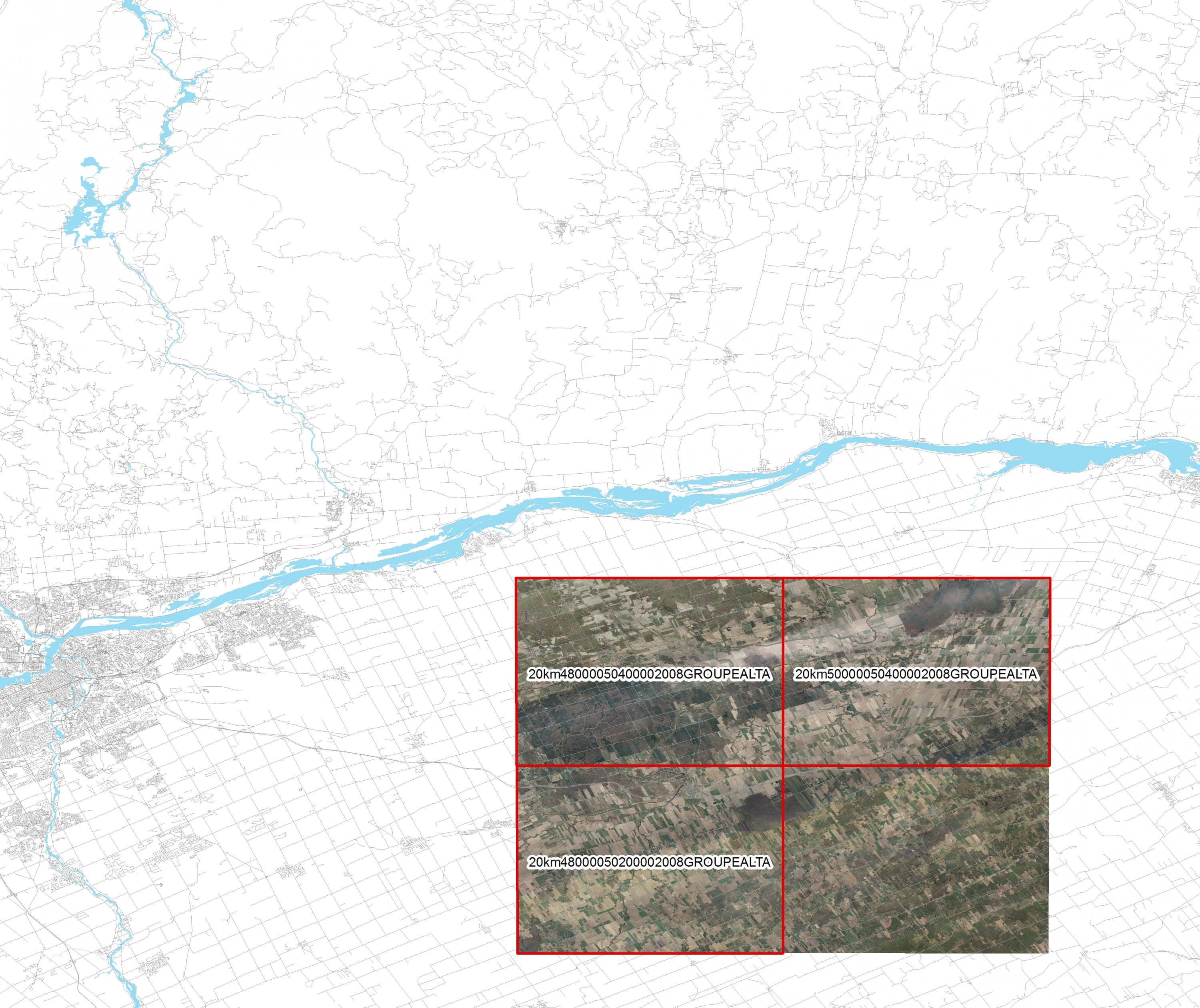 These georeferenced images are available in Universal Transverse Mercator (UTM) coordinates; horizontal datum is North American Datum (NAD) 83. They are stored as 50 cm true colour 1km x 1km MrSID tiles and MrSID compressed orthomosaics. The average file size for 1km tiles is 4MB and 1GB for 20Km tiles.