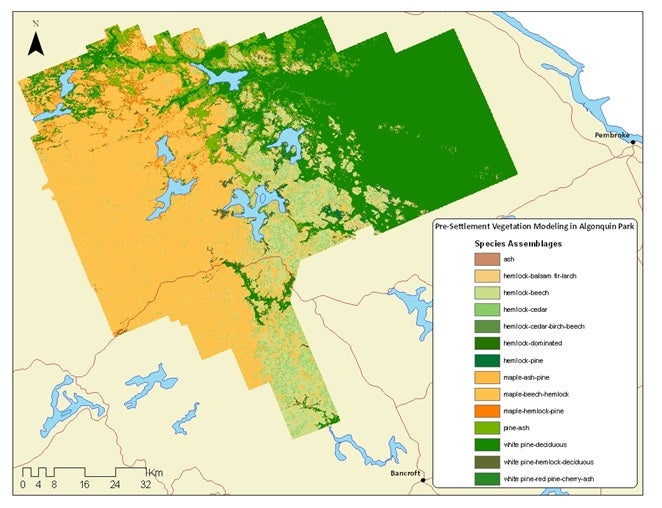 This metamap is a comprehensive database of pre-settlement vegetation coverage generated by several other cartographic sources including Artus et al (2009), Franscecut (1978), Heidenreich (1973) and Puric-Mladenovic (2003-2013, along with various co-authors/cartographers). Please reach out to the Geospatial Centre if you'd like to receive the files in KML (Google Earth) format. Return to main project site.
