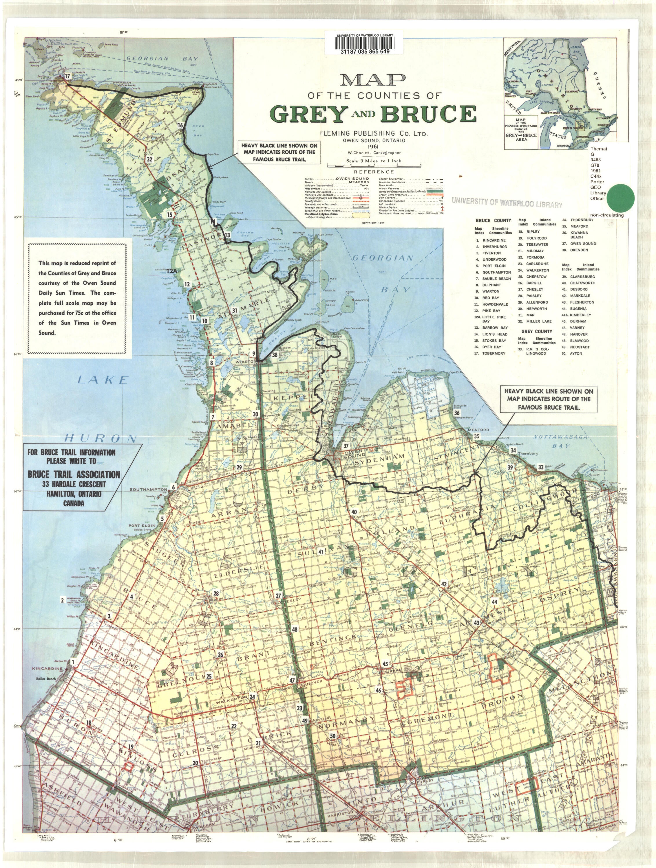 | 1961 | Fleming publishing company limited | 1": 3 miles | Grey and Bruce |