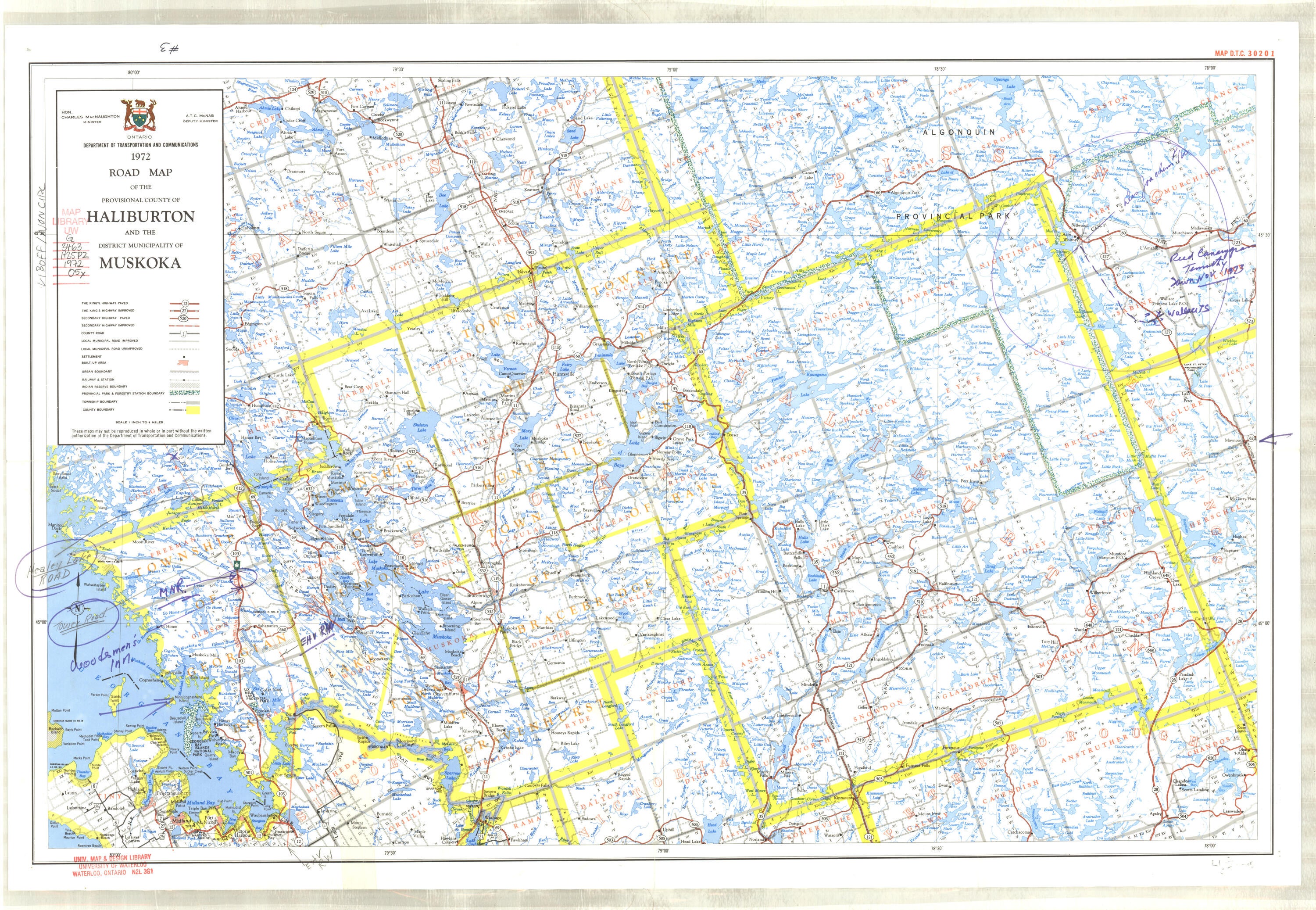 | 1972 | Ontario Dept. of Transportation and Communications | 1": 4 miles | Manitoulin |
