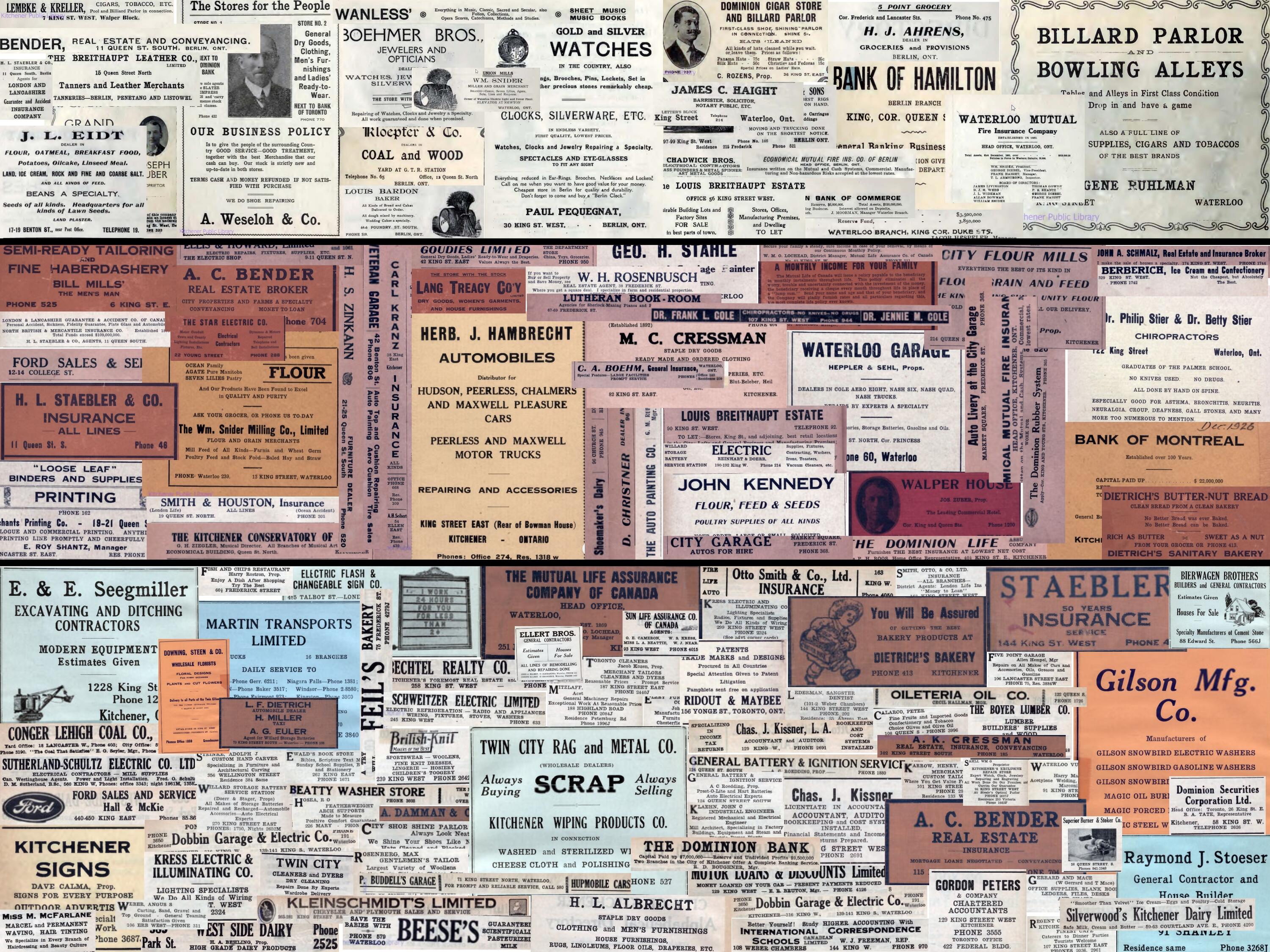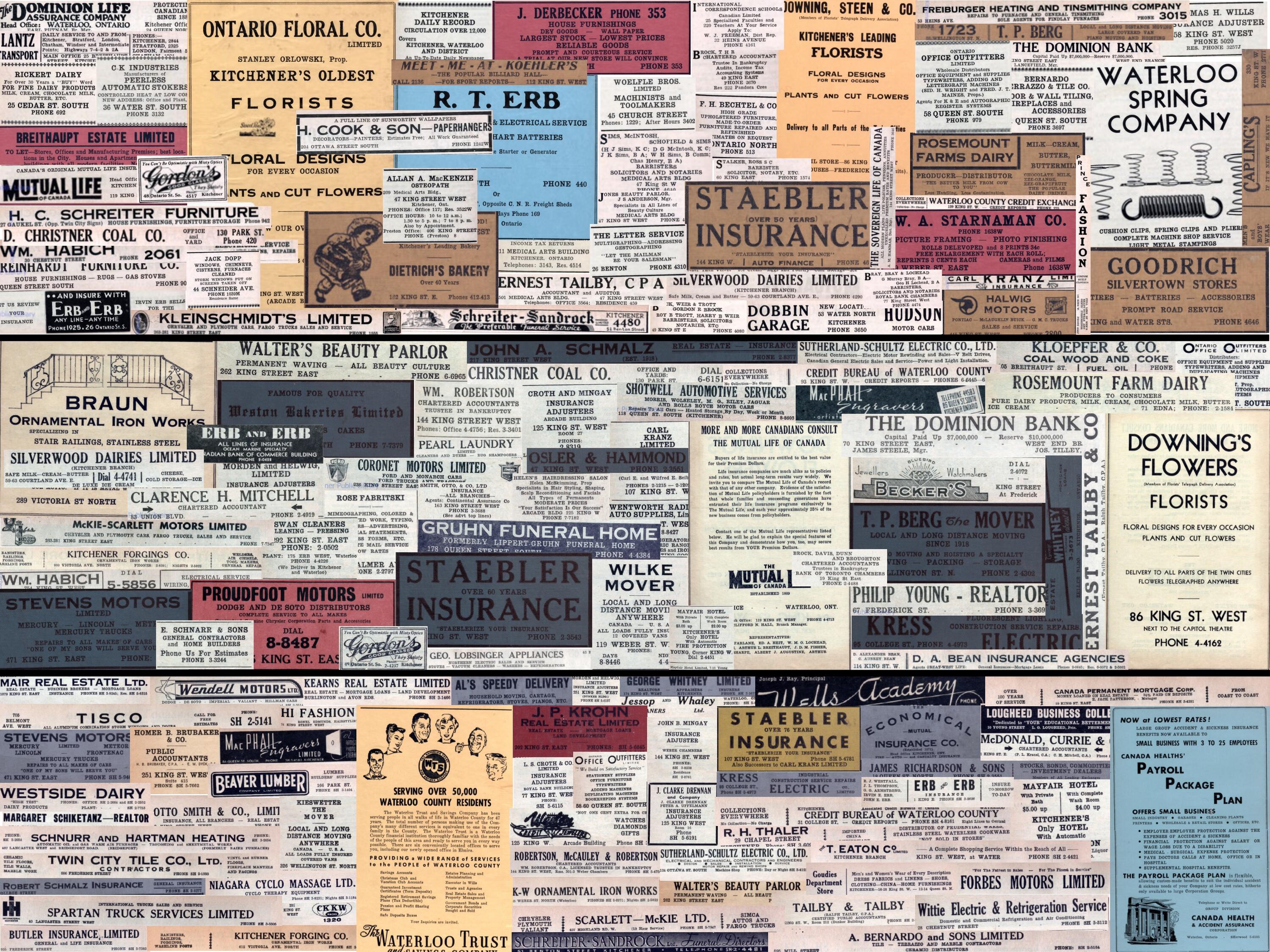 This project has been funded in part by the Social Sciences and Humanities Research Council, as well as the University of Waterloo Libraries. We would like to acknowledge the support of Karen Ball-Pyatt, the Kitchener Public Library as well as Darryl Bonk, from Waterloo Region Generations, who have generously provided us with scanned versions of the city directories.