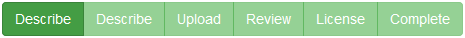 Describe, Describe, Upload, Review, License, and Complete.