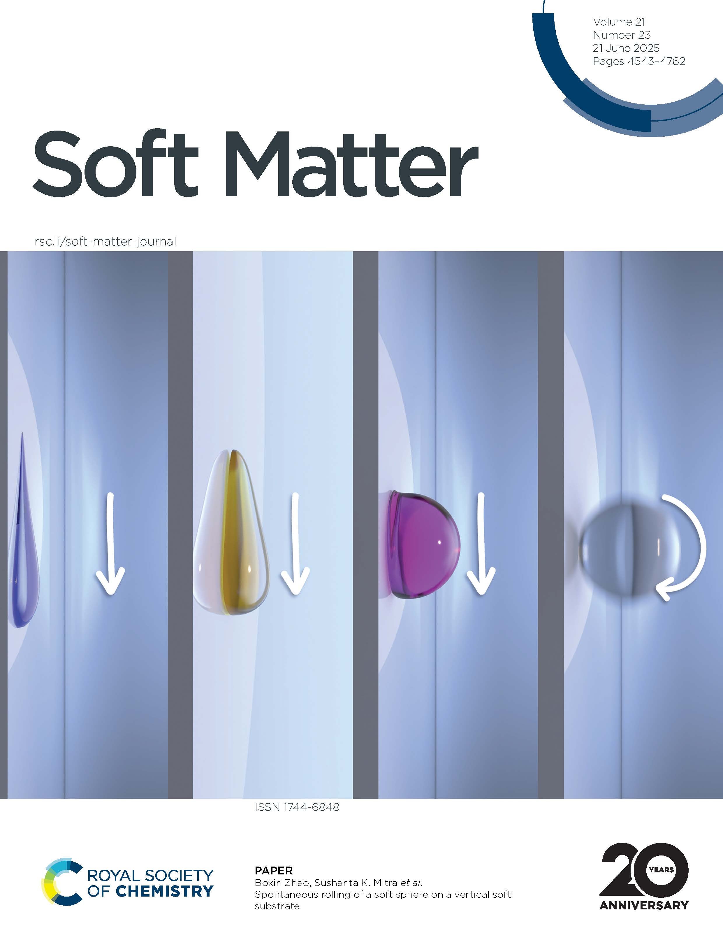 - S. Mitra, A-R. Kim, B. Zhao, and S. K. Mitra, "Spontaneous rolling of a soft sphere on a vertical soft substrate", Soft Matter, DOI: 10.1039/D4SM01490A, 2025 (Cover Article).