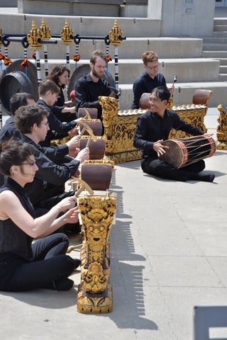 Balinese gamelan (semara dana) are ensembles of primarily percussive instruments made of bronze and bamboo that may include drums, flutes, strings, and voice. An oral tradition taught and learned collectively, repertoire is transmitted in a group setting without the use of sheet music. Directed by Balinese artist I Dewa Made Suparta, students experience a communal process of creating music while also learning about the culture of Bali.