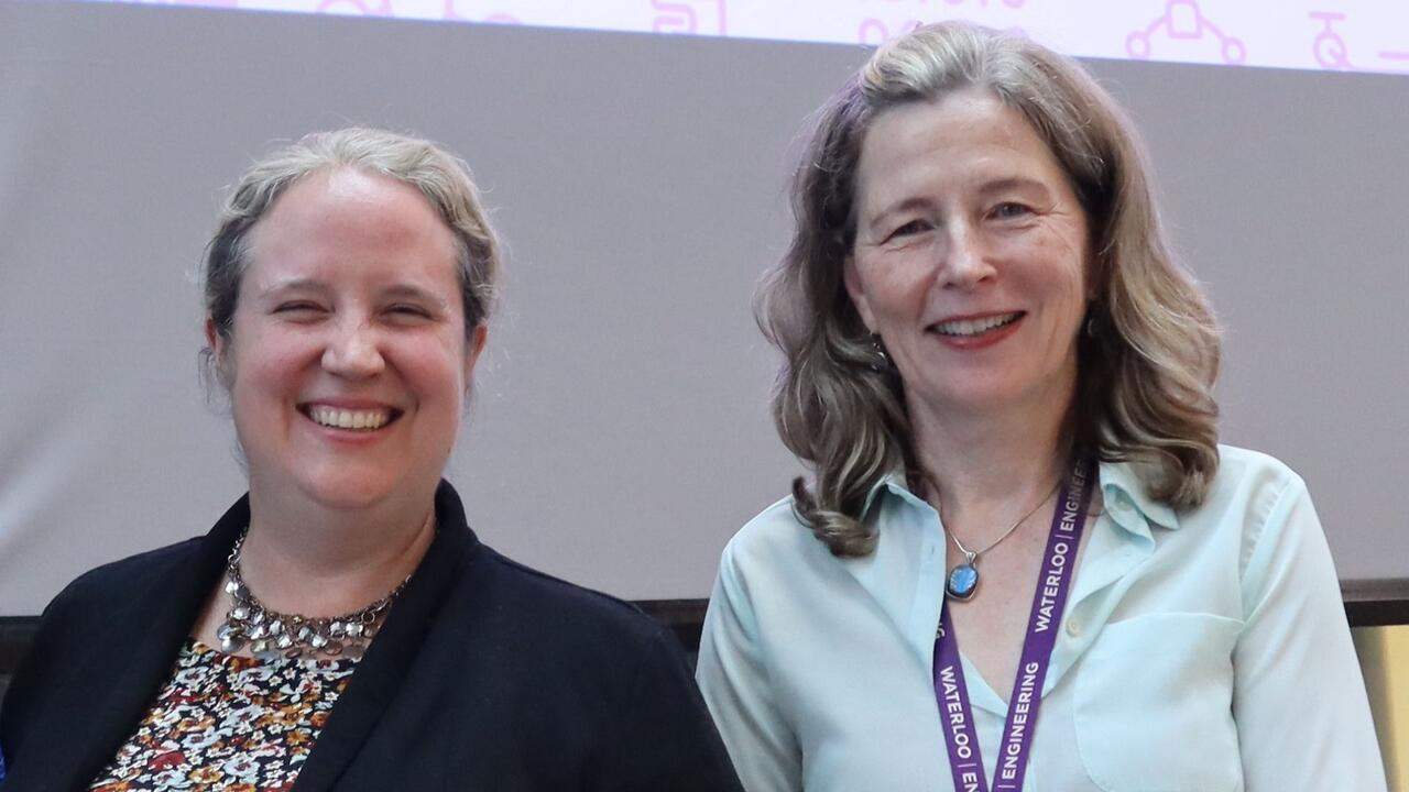 Feature image: Stephanie Thompson (left) with Dr. Mary Wells, dean of Waterloo Engineering. Photo supplied by Stephanie Thompson.