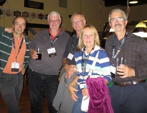 Alumni from the Math class of 1975 reunited in 2015. From left to right: Chris Trothen (BMath ’75), Brian Hughes (BMath ’75), David Emery (BMath ’75), Anu Kuutan-Emery (BMath ’75) and Lloyd Dunham (BMath ’75).