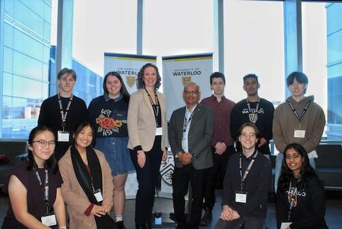 Hilus Keay (back row, third from right) with Dr. Vivek Goel, President and Vice-Chancellor, University of Waterloo (centre, right); Meghan Moore, Chief Executive Officer, Loran Scholars Foundation (centre, left); and members of the Loran community at the University of Waterloo.