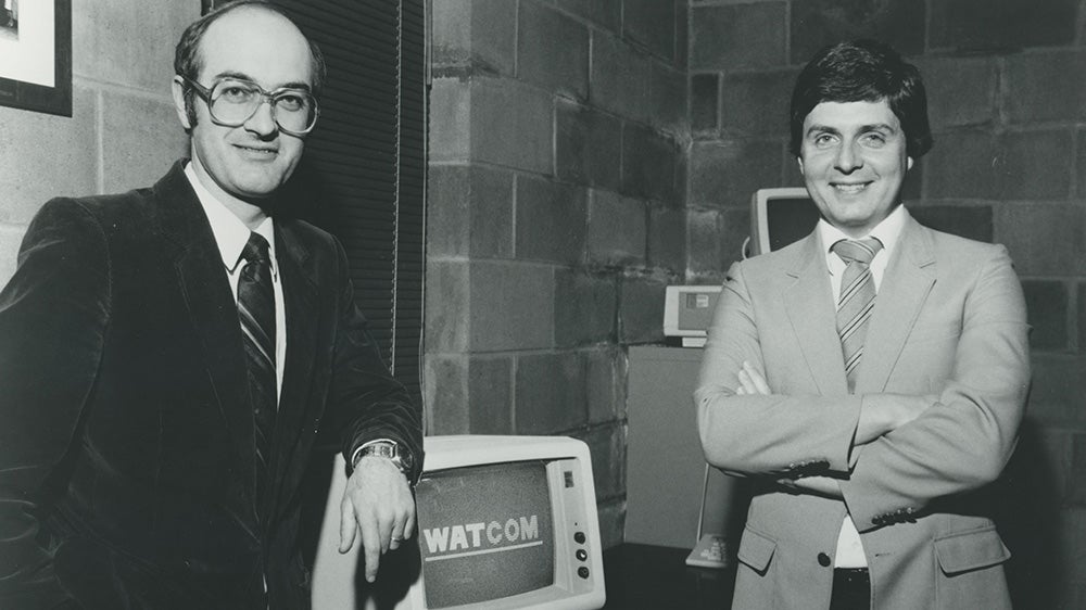 Those words held special significance for Dr. Don Cowan (MSc ’61, PhD ’65) and Ian McPhee (BMath ’73, MMath ’79, DMath ’11). As key contributors alongside many other Waterloo pioneers, they transformed the computing world — first with the creation of WATFOR, a legendary compiler for IBM mainframes, in the 1960s and later the software spinoff WATCOM in the ’80s and ’90s.