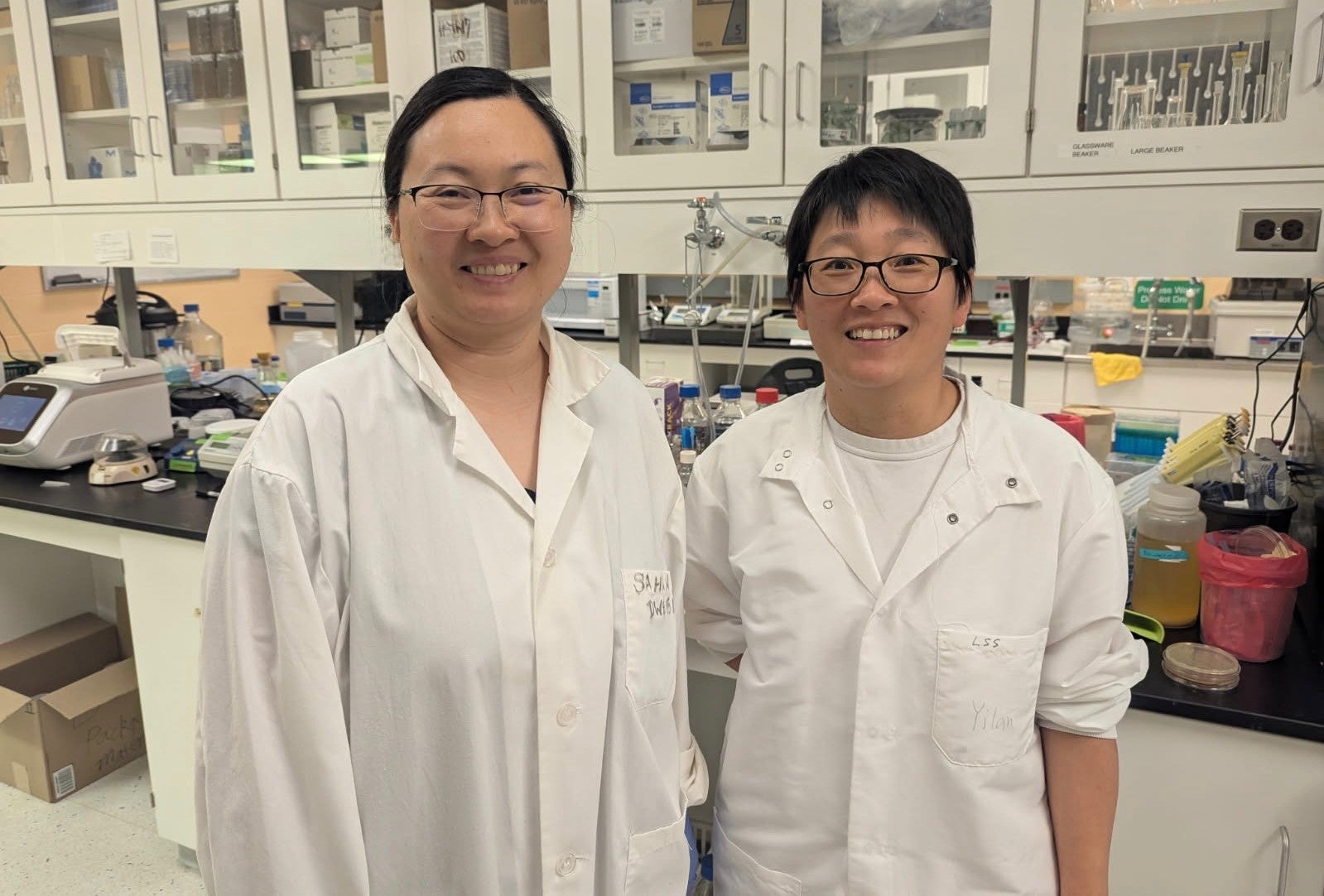 Top image: Dr. Jinjin Chen (left), a researcher in the Synthetic Biology for Sustainable Development Laboratory and first author of the paper, and University of Waterloo chemical engineering professor Dr. Yilan Liu. (University of Waterloo)