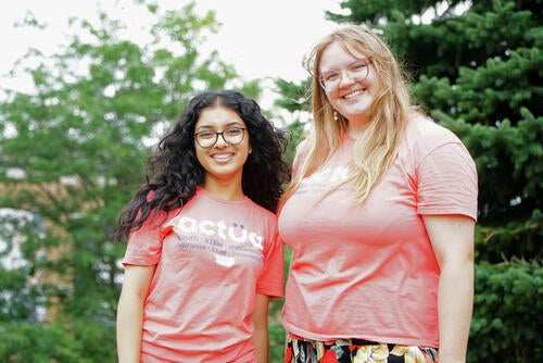Simone Sankhe poses with another Engineering Outreach staff member.