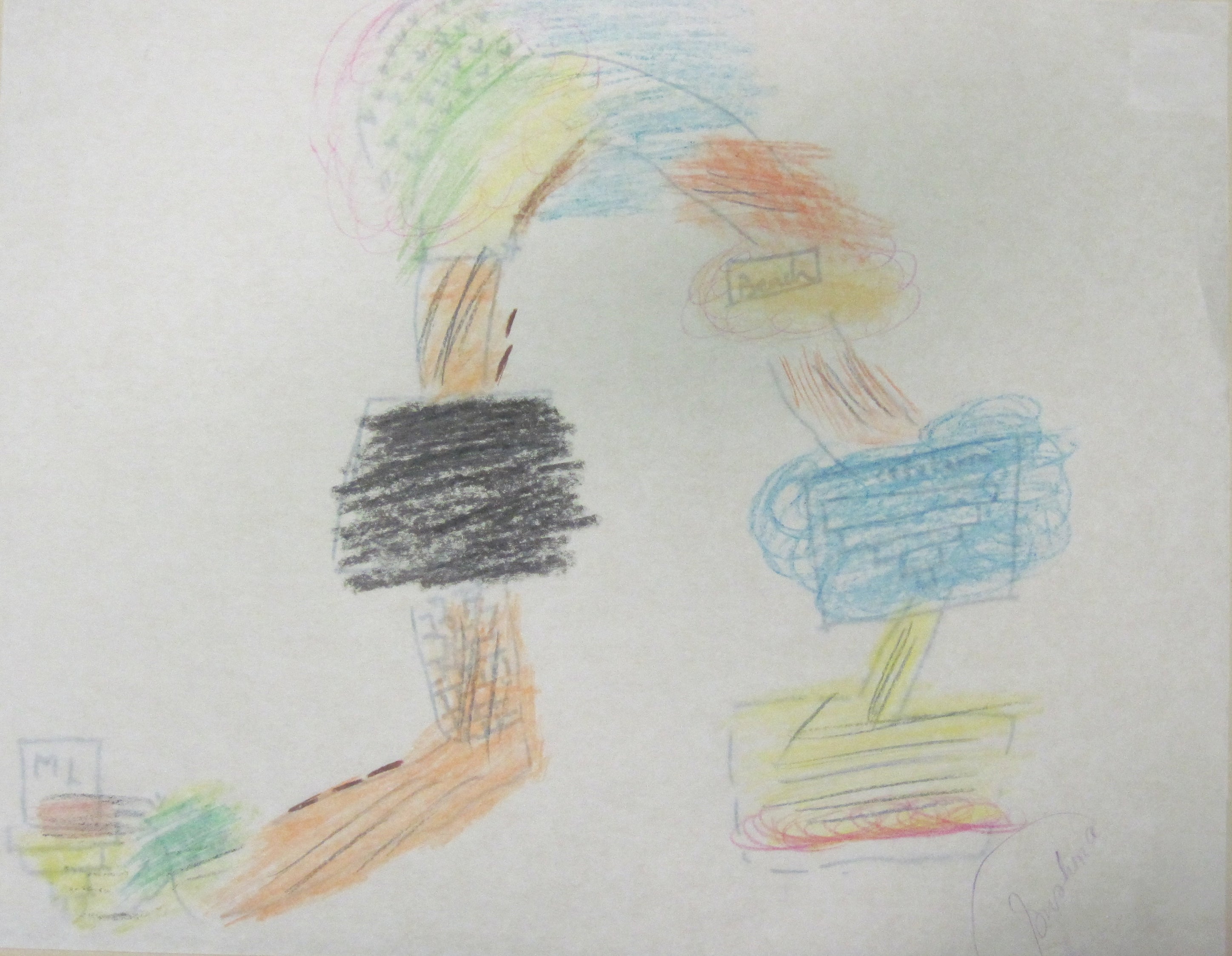 Immédiatement à la fin de la marche, chaque participant a dessiné en noir sur une feuille le trajet qu’il avait parcouru, tel qu’il l’avait perçu. À cette feuille est venu se superposer un calque sur lequel chaque participant a dessiné en couleurs les sensations et émotions ressenties tout au long du trajet.