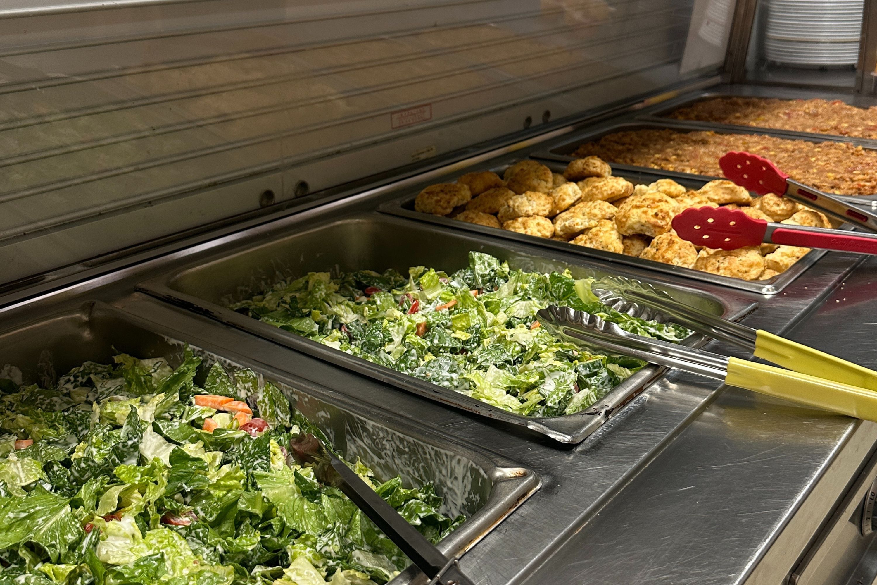 The menu consisted of vegetarian white bean chili, garden salad, dinner buns and a fruit cup for dessert. Community members had the option to take their meal to go or stay at the centre for dinner.
